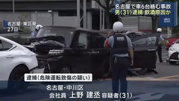 【顔画像】上野建丞容疑者は何者?名古屋で“飲酒運転暴走”6台玉突き事故