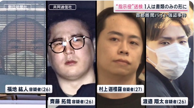 去年首都圏で18件発生した強盗事件で、指示役として福地紘人容疑者(26)、齊藤拓哉容疑者(26)、村上迦楼羅容疑者(27)、渡邉翔太容疑者(26)の4人を逮捕し、6日に送検… pic.twitter.com/XYeHWVv4Mx— 報道ステーション+サタステ (@hst_tvasahi) December 6, 2025