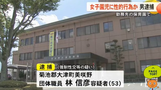 【話題】保育施設で未就学児に性的行為か、53歳の団体職員の男逮捕 熊本