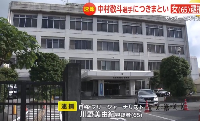 サッカー日本代表の中村敬斗選手に対し、執拗なメッセージを送り続けていたとして、65歳の自称フリージャーナリストの女が逮捕されました。