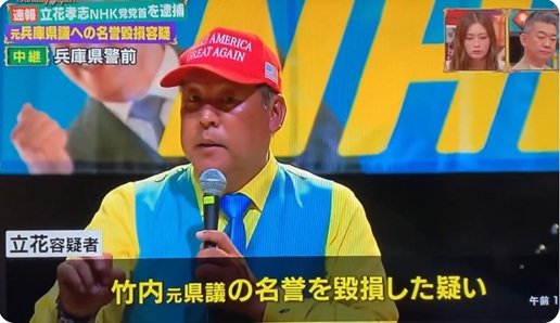・立花孝志容疑者は、竹内英明元県議を根拠なく中傷したとして名誉毀損容疑で逮捕